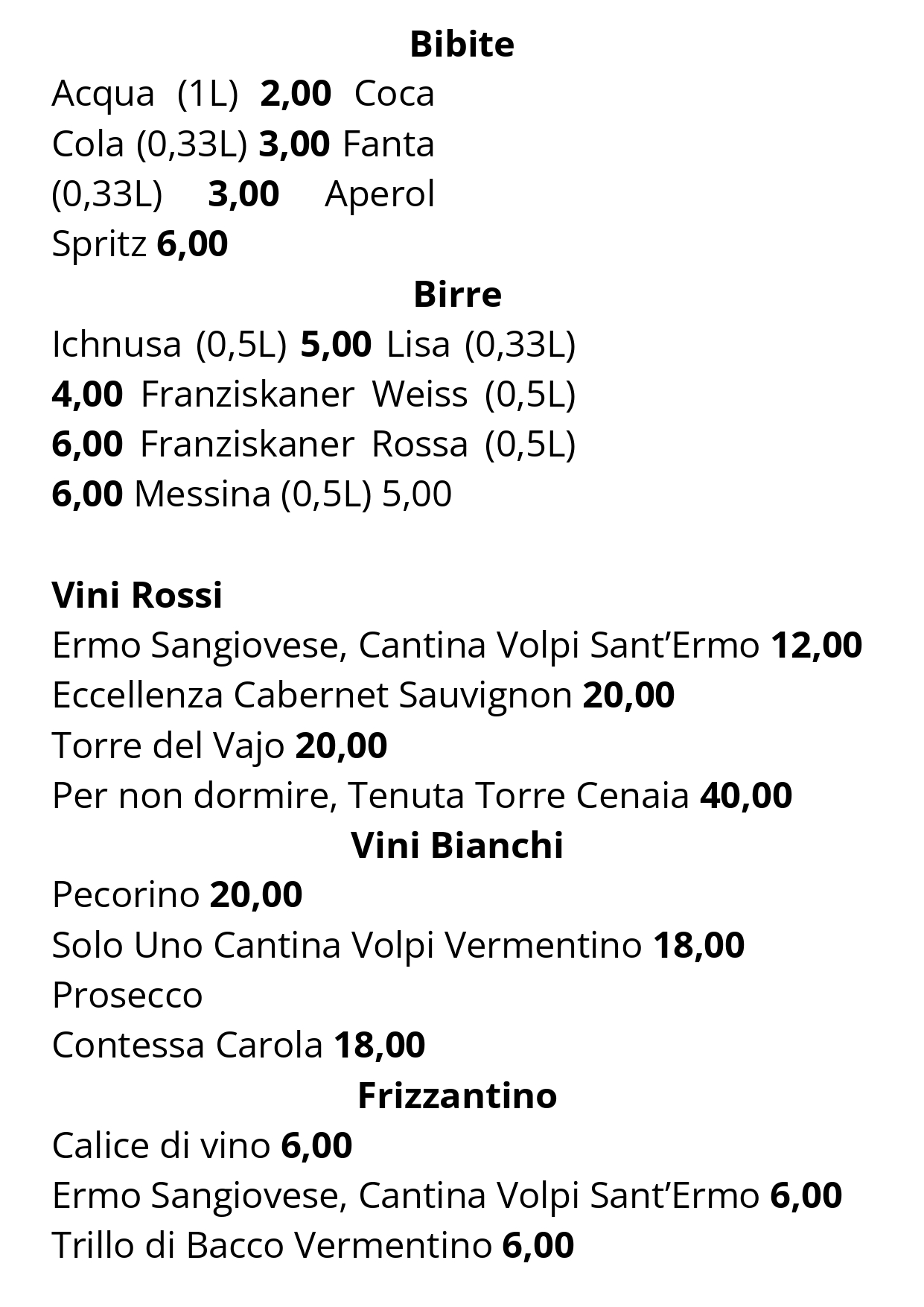 Scarica il Menu